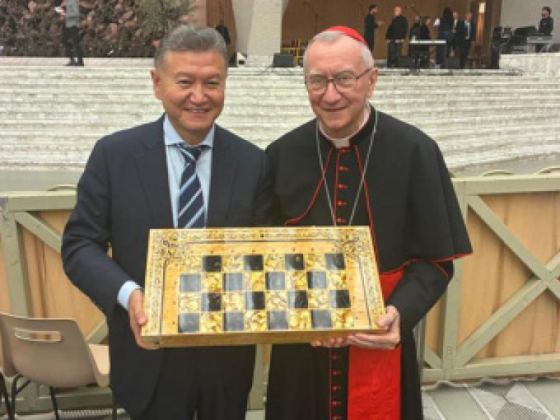 Как сообщает РИА «Дагестан», экс-президент Международной шахматной федерации (FIDE) Кирсан Илюмжинов передал набор дагестанских шахмат для Папы Римского Льва XIV . В Ватикане он посетил торжественное собрание, посвященное 60-летию декларации об отношении католической церкви к нехристианским религиям – Nostra Aetate.