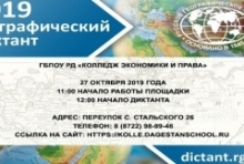 С 2015 года Русским географическим обществом проводится просветительская акция «Географический диктант», к которой может присоединиться каждый желающий . В этом году он пройдет 27 октября. В Дагестане для этой цели уже определили 32 площадки,9 из которых находятся в Махачкале. Полную информацию о Диктанте можно посмотреть на сайте РГО: htt://dictant.rgo.ru