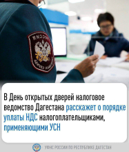 УФНС по РД сообщает о том,что 19 декабря во всех подразделениях ведомства пройдет День открытых дверей для предпринимателей, применяющих упрощенную систему налогообложения (УСН).В ходе приема , налоговики дадут разъяснения по вопросам уплаты НДС налогоплательщиками, применяющим УСН.