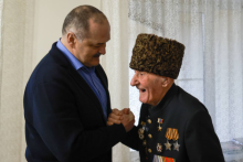 Звезду Героя Ибрагим-Паша завоевал в 1945 году, но вручили ветерану ее только сейчас при помощи Сергея Алимовича. « Желаю Вам здоровья!» – сказал ветеран главе региона.