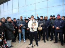 В махачкалинском аэропорту торжественно встретили победителей чемпионата мира по боксу, который завершился в Дубае.