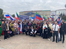 В поддержку Российской армии, курса президента РФ и в честь 70-летия Владимира Владимировича Путина прошла 7 октября на центральной площади Махачкалы. Более 30 тысяч дагестанцев выразили свою солидарность с политикой современной России. Присоединилась к акции и делегация Сергокалинского района, которые приехали на концерт в ярких национальных костюмах и с флагами любимых страны и республики, приветствуя политику главы государства и вхождение в состав России новых регионов.