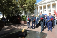 В связи с празднованием Дня города, 25 сентября в Махачкале состоялась церемония возложения цветов к памятнику Неизвестному солдату и на Аллее Славы в парке им ЛК, в которой принял участие премьер-министр Дагестана Абдулмуслим Абдулмуслимов.