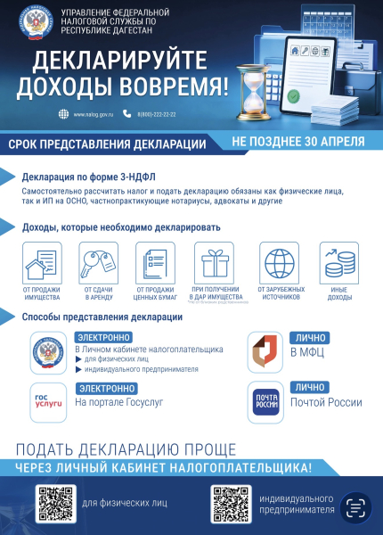 представить декларацию о доходах за 2025 год, сроках уплаты налога на доходы