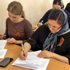 Перед началом диктанта прошла торжественная регистрация, после чего каждому участнику волонтеры прикрепили георгиевскую ленточку — символ памяти и связи поколений.