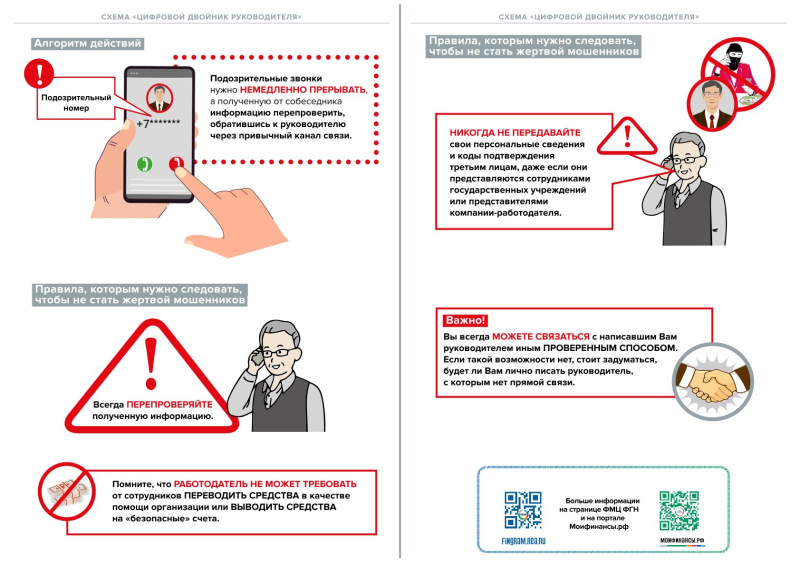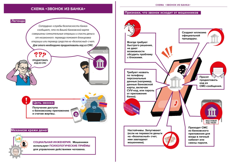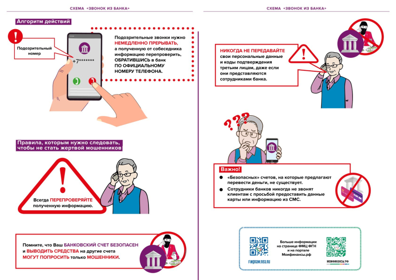 инфокарточки — краткие памятки с ключевыми признаками обмана и алгоритмами действий в критической ситуации.